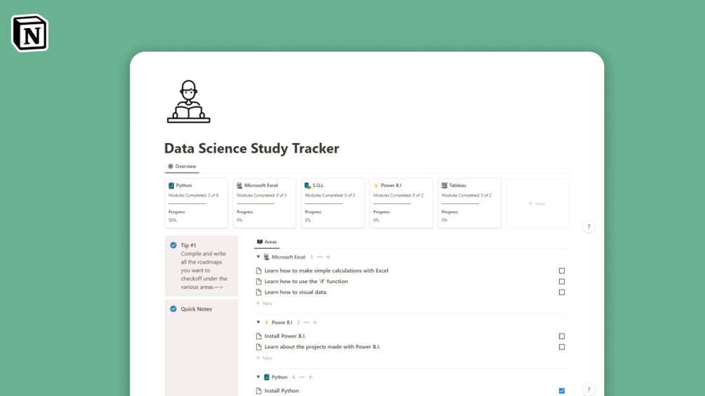 Use this simple data science tracker to collect your learnings, and track your studies.